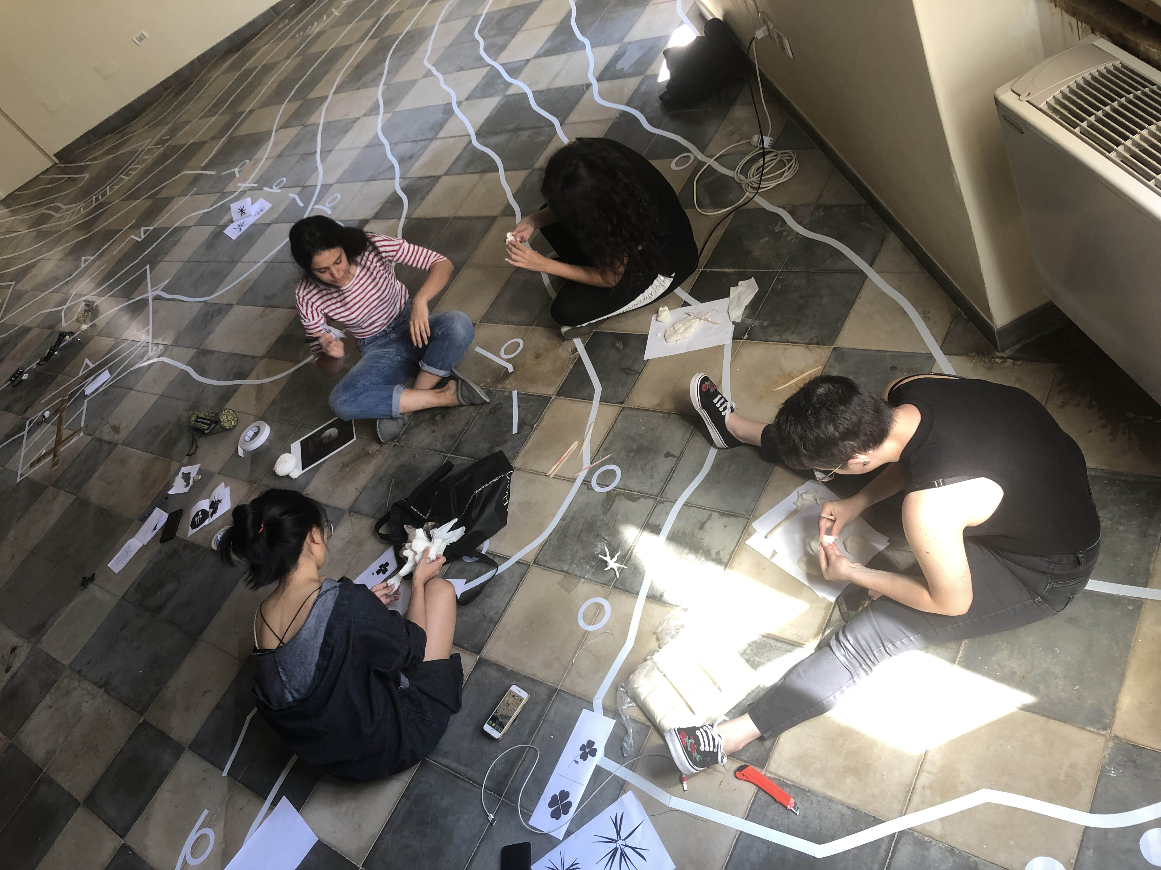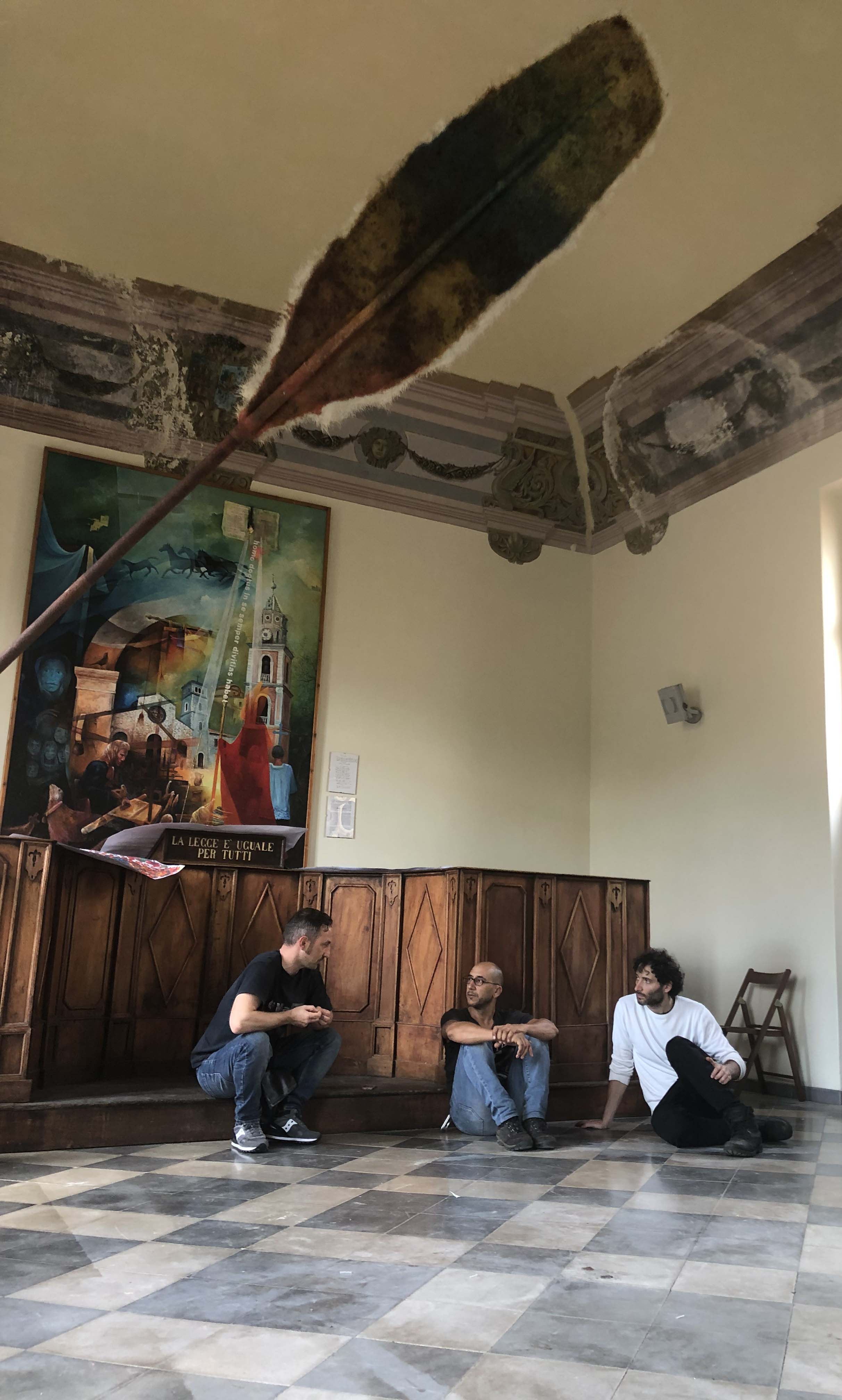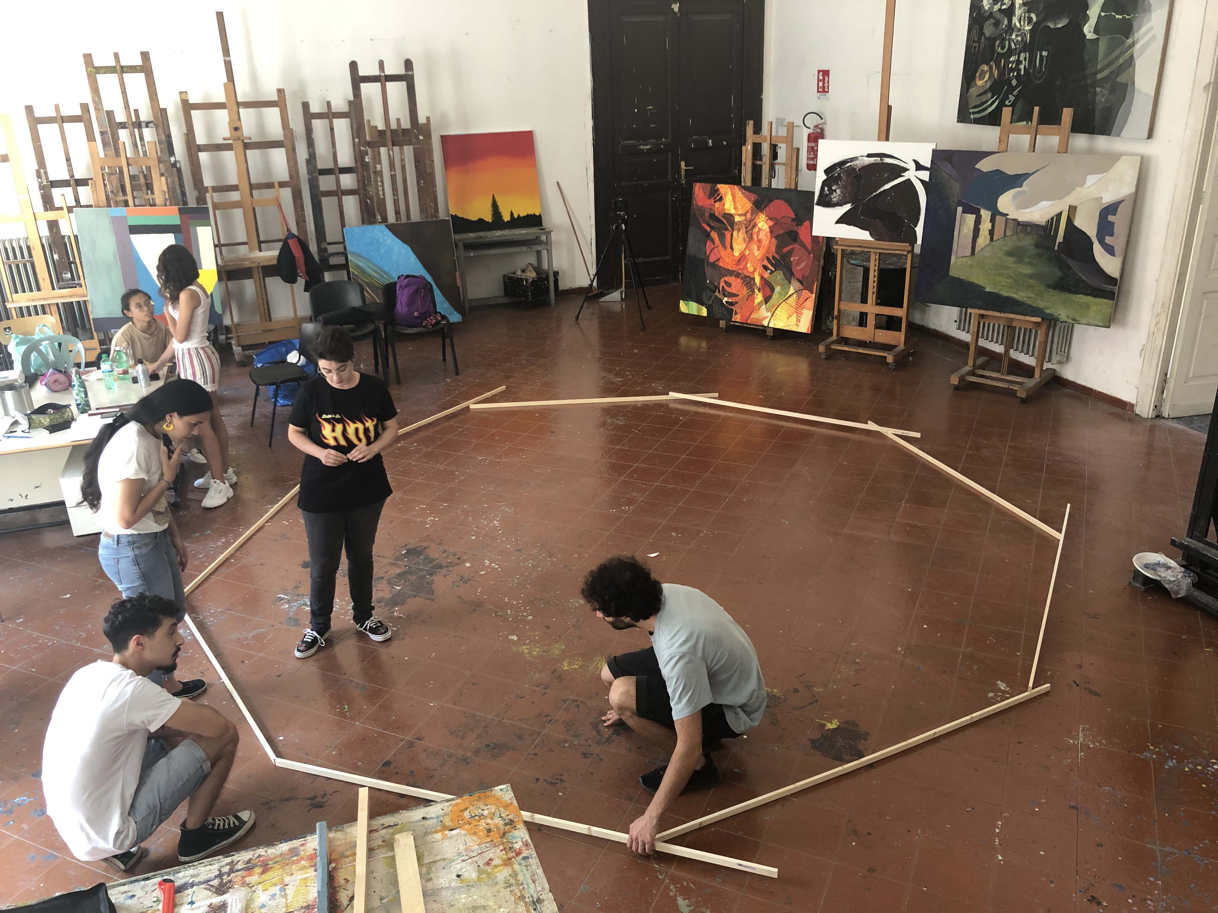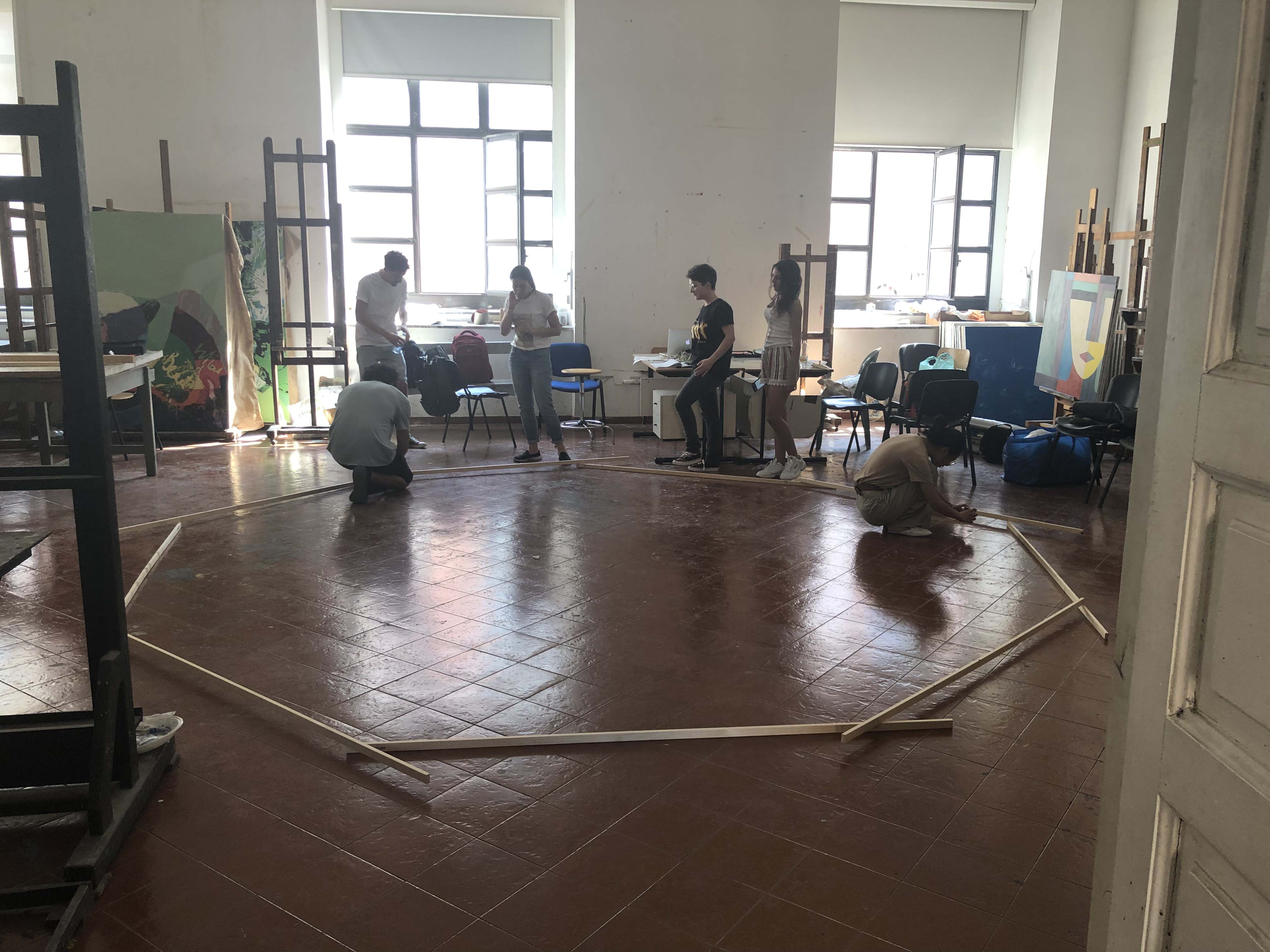 At the Fine Arts Academy in Naples, the students put into practice the most interesting ideas and intuitions they had during their residency, with the aim of creating a collective work. In this phase there was also a discussion on the work alba/tramonto (hammock) created by the duo for the exhibition 24:24 Epiphanìa.