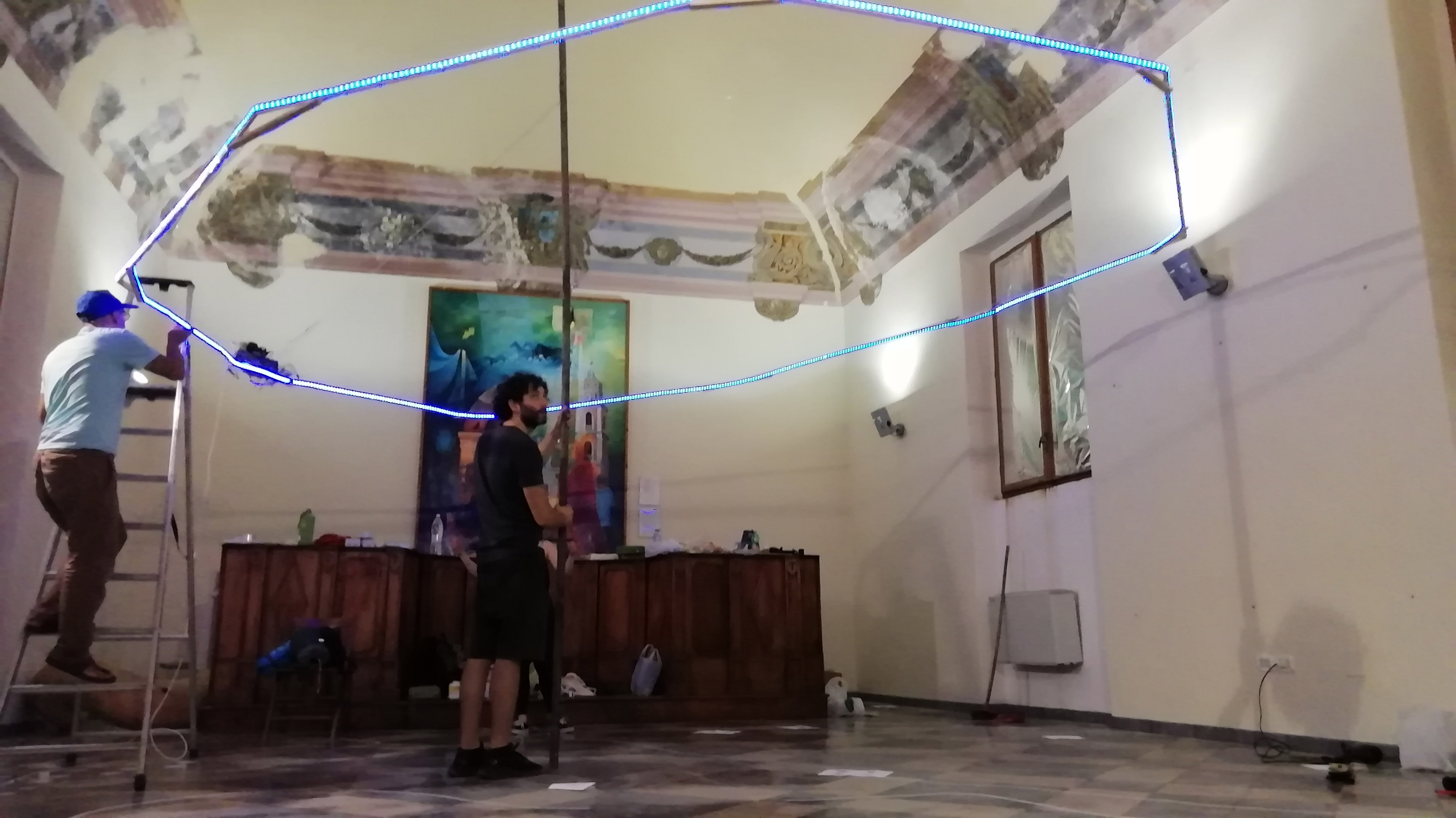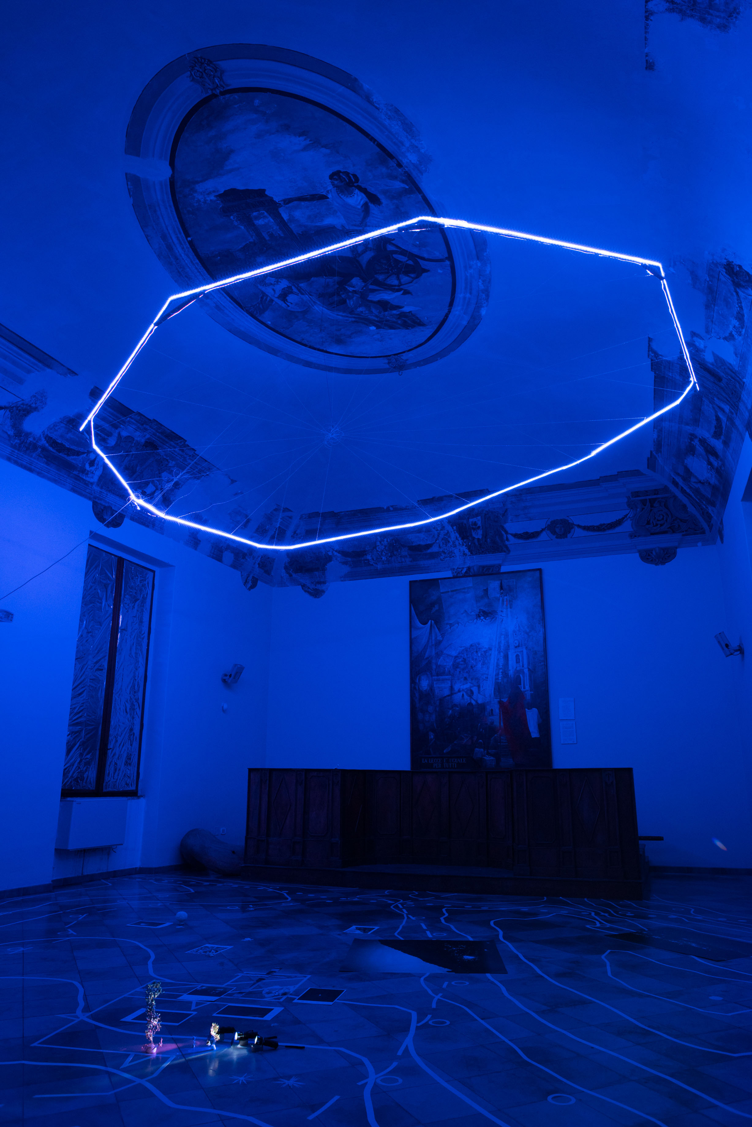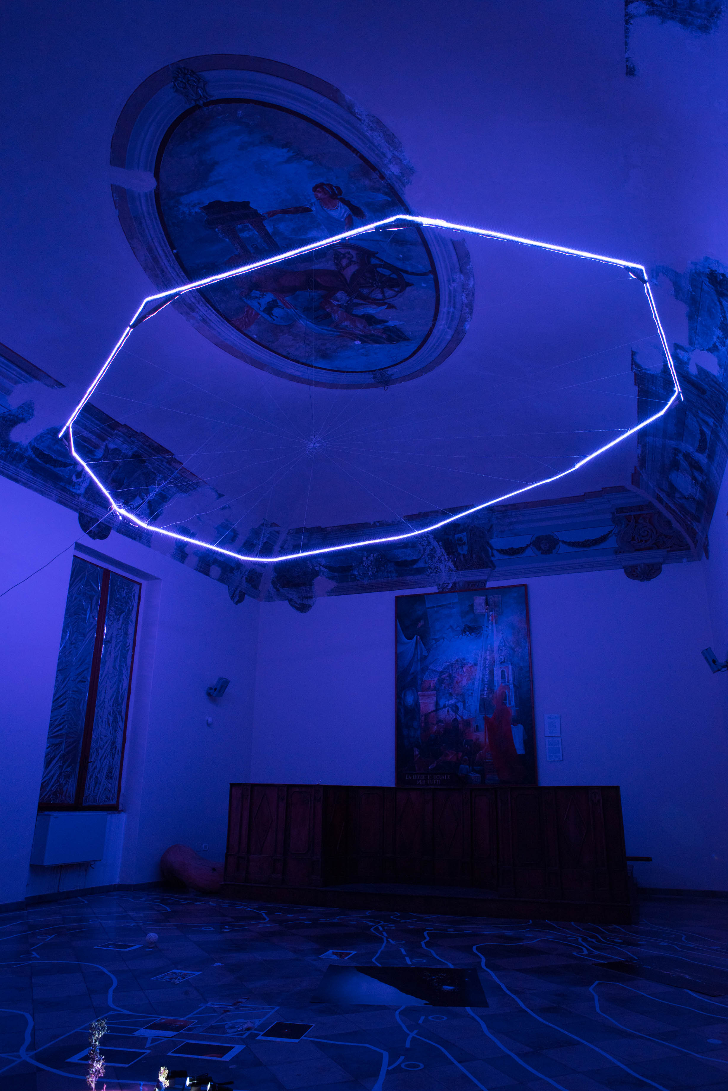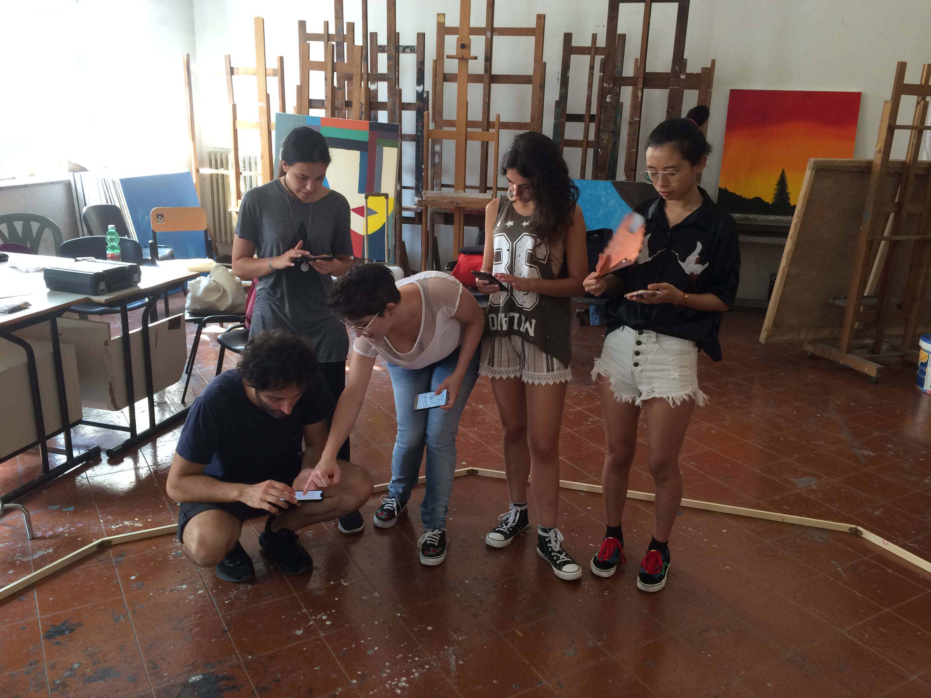 At the Fine Arts Academy in Naples, the students put into practice the most interesting ideas and intuitions they had during their residency, with the aim of creating a collective work. In this phase there was also a discussion on the work alba/tramonto (hammock) created by the duo for the exhibition 24:24 Epiphanìa.